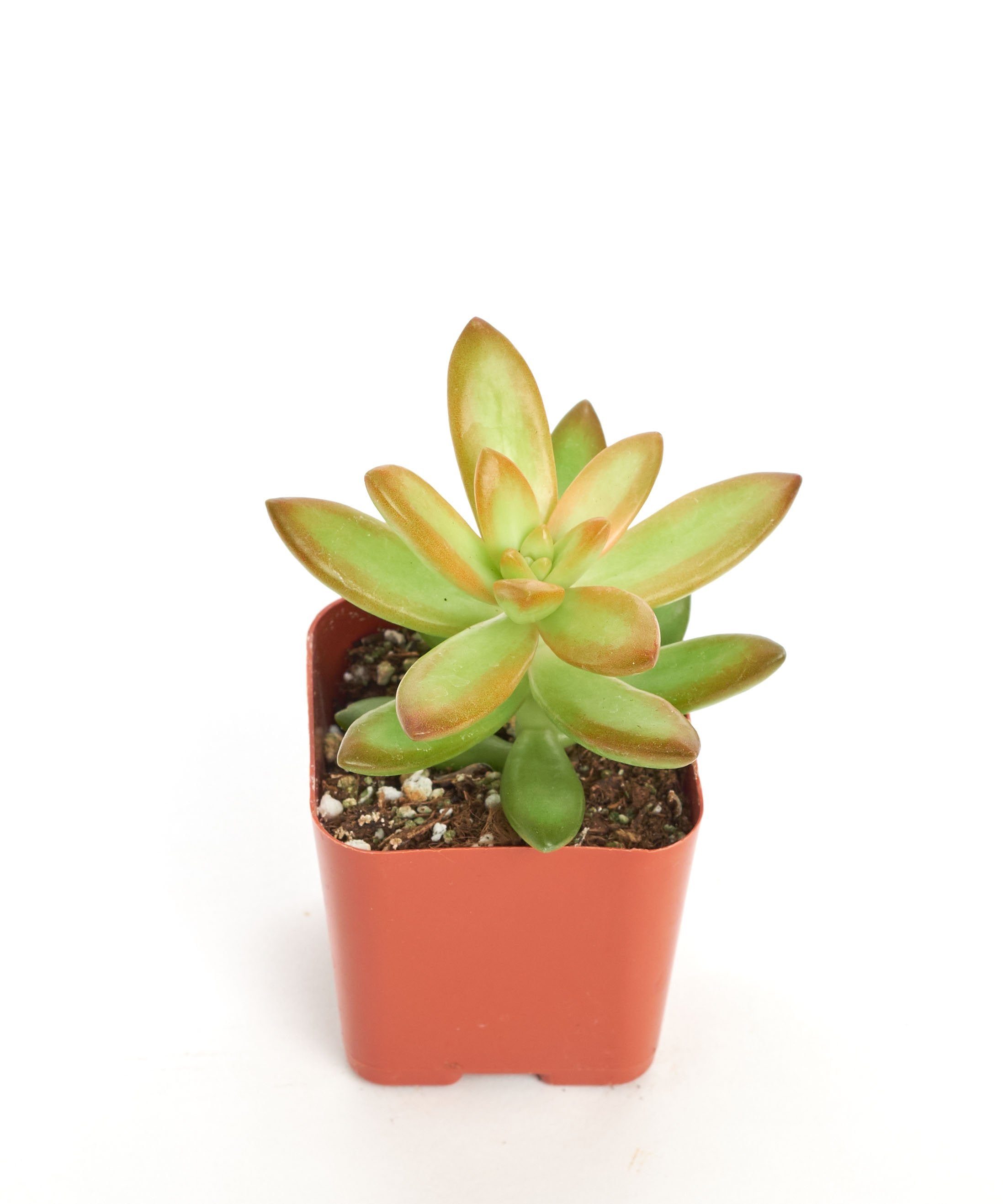 Sedum Adolphii 'Firestorm' is a captivating succulent known for its vibrant and fiery foliage, making it a prized addition to succulent collections and gardens. With its striking, needle-like leaves that transition through shades of green to brilliant shades of orange and red, 'Firestorm' resembles a miniature inferno, bringing warmth and color to your plant collection. This succulent is cherished for its low-maintenance nature and drought tolerance, making it a great choice for both beginners and experienced gardeners. Whether indoors as a potted plant or in outdoor rock gardens, Sedum Adolphii 'Firestorm' infuses spaces with a fiery touch of natural beauty, making it a standout feature in any succulent arrangement.