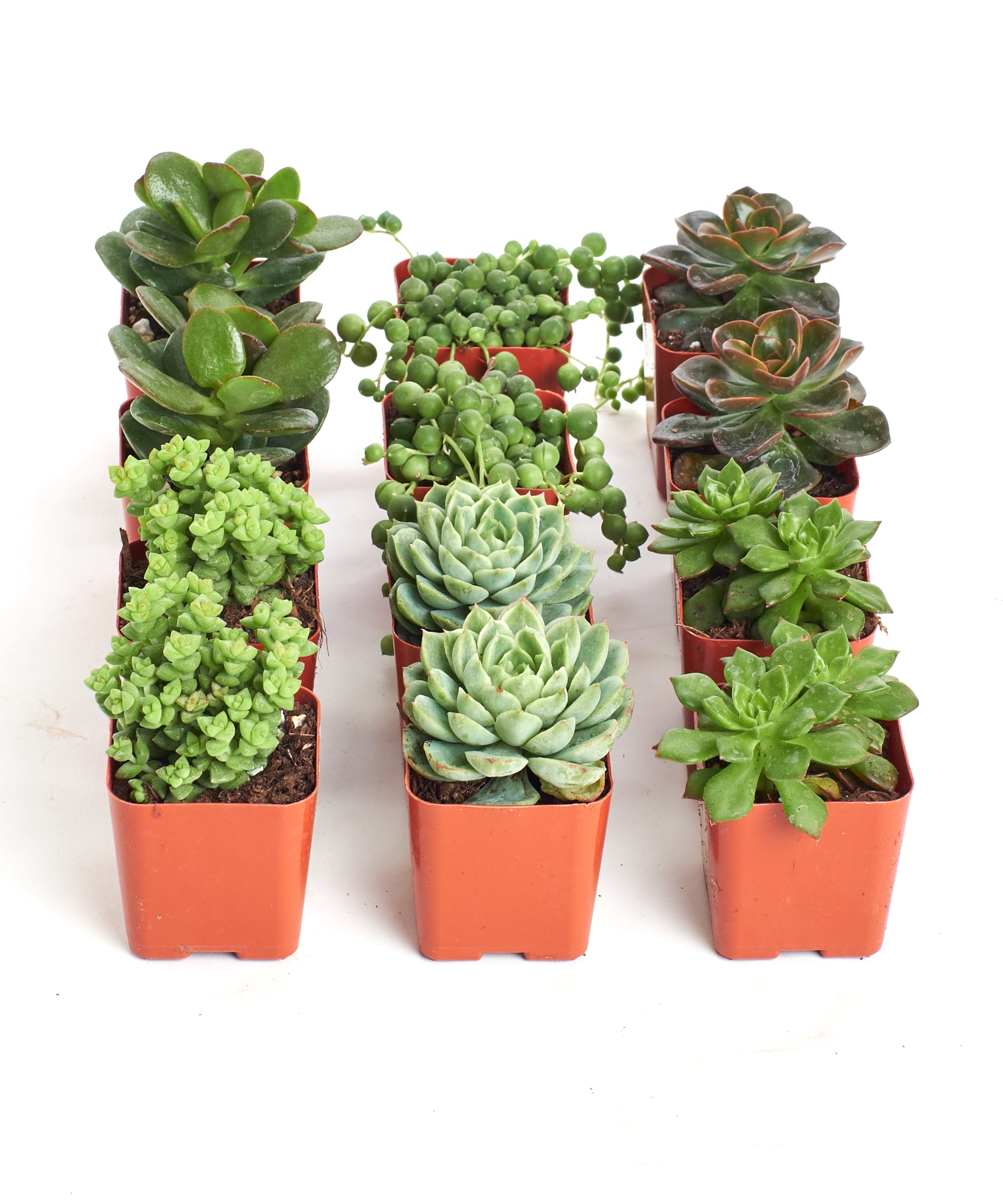 While the green collection includes some repeat species, we've designed it to offer a diverse range of green succulent species with many shapes and textures. This collection provides both familiarity and excitement, making sure you have a well-rounded succulent assortment that is full of beauty.